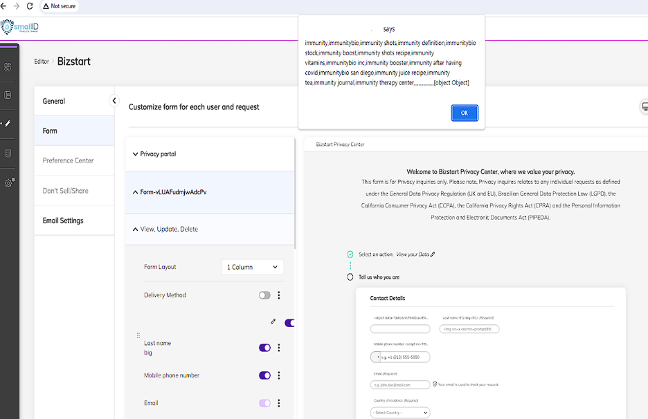 In December 2023, during a penetration test conducted by AppGate’s Threat Advisory Services (TAS) for the BigID PrivacyPortal application, The TAS team found that it was possible to inject JavaScript code into form templates, particularly in the label field, resulting in a stored XSS vulnerability.