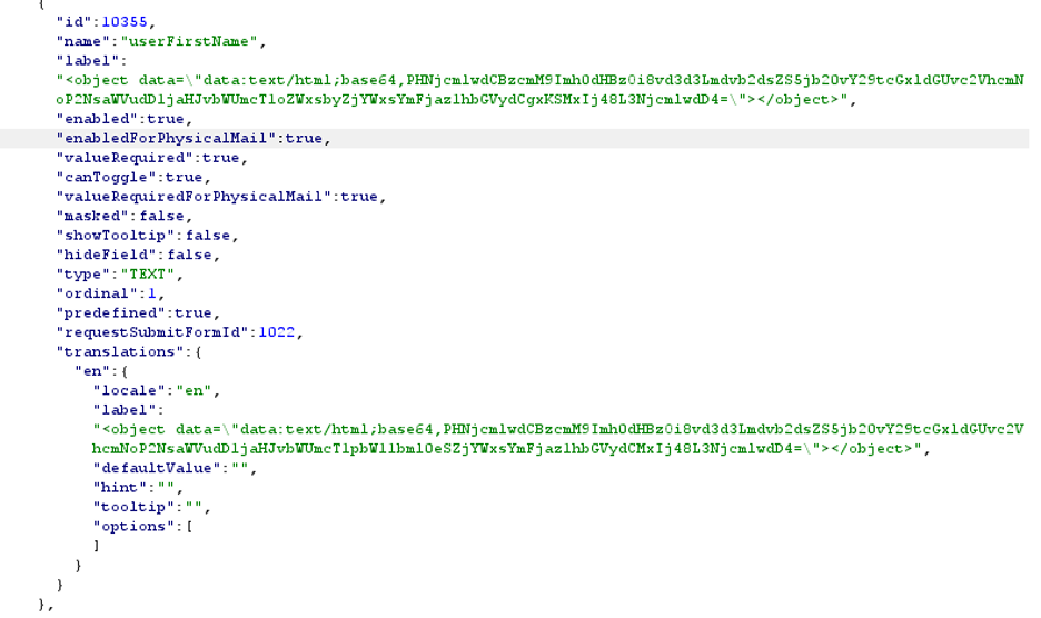 Operating under the assumption that the server-side filters and validations were triggering on known-malicious HTML/JavaScript, TAS analysts attempted to construct a payload that would trick the filters into accepting the malicious content as safe. For this, the HTML <object> was used because it allows encoding of its contents.