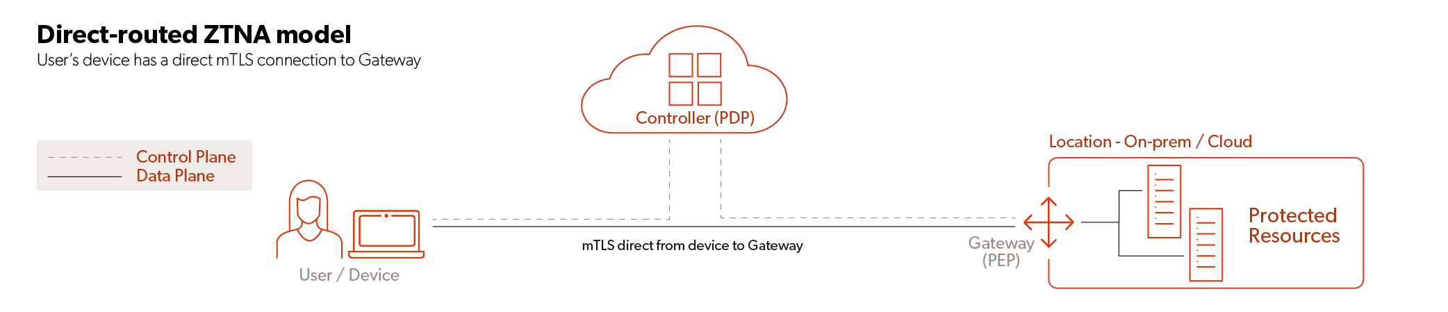 The direct-routed model supports all network protocols (web, non-web, any TCP, UDP and ICMP) and handles server-initiated connections seamlessly. It also supports the universal ZTNA concept because on-premises users accessing local resources will have their network traffic remain entirely within the local enterprise network. Because the PEP needs to be deployed where the resources live, some firewall changes are usually required. This architecture is more suited to support the most complex and sophisticated enterprise environments.